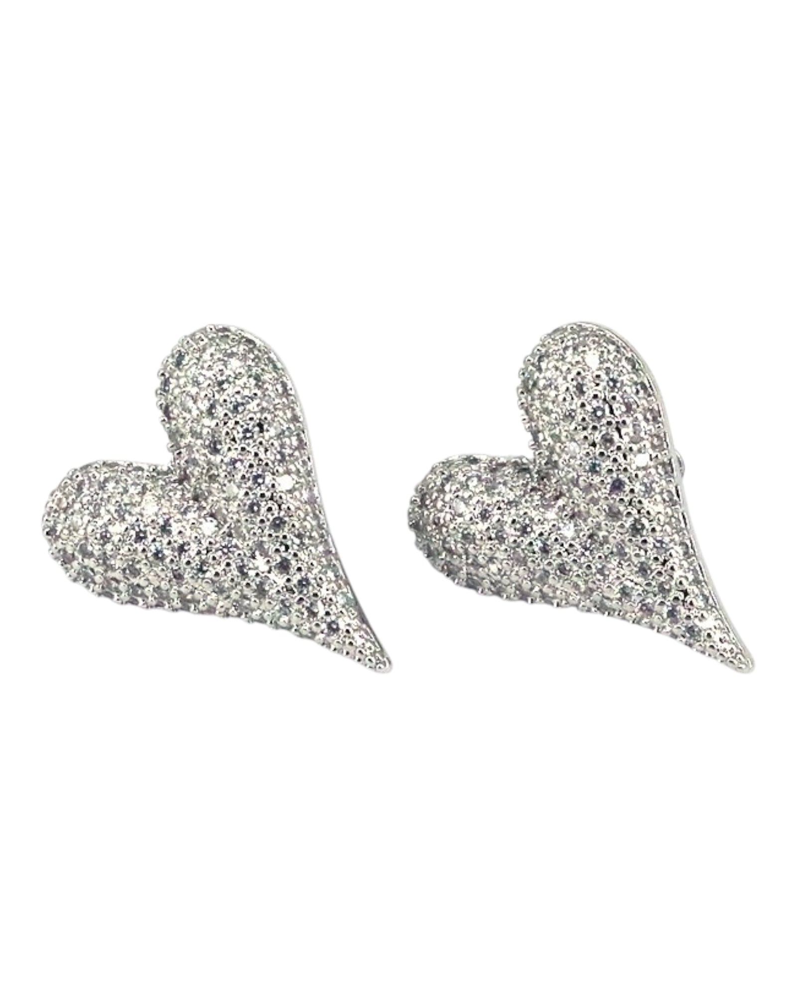 Estos aretes dorados con forma de corazón están cubiertos de micro zirconias que reflejan la luz desde cualquier ángulo.
