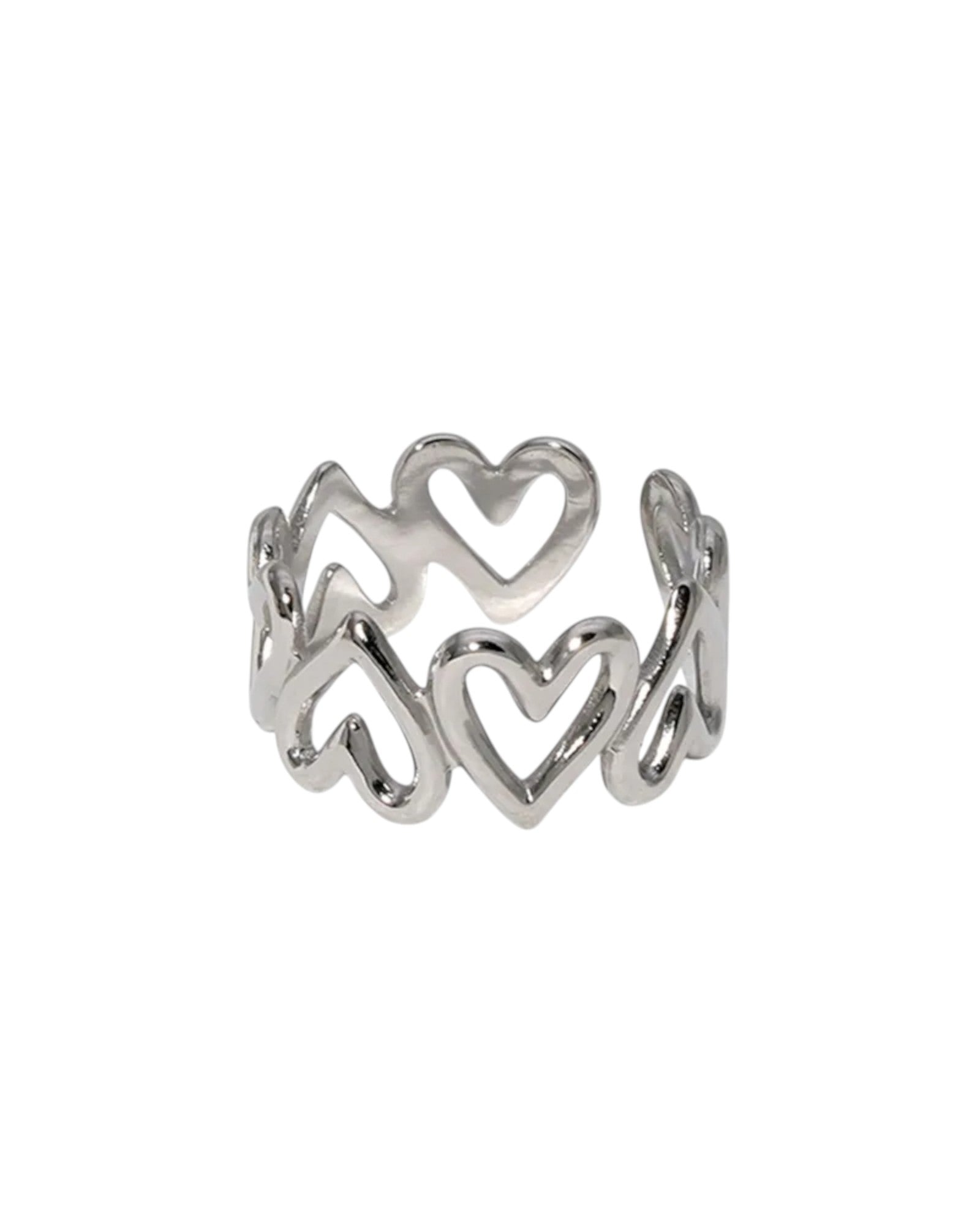 El anillo Corazones Infinity resalta por su diseño delicado de corazones entrelazados que representan unión, cariño y energía positiva. Su estilo romántico y moderno lo convierte en una pieza versátil, perfecta para regalar o lucir como recordatorio de amor propio.