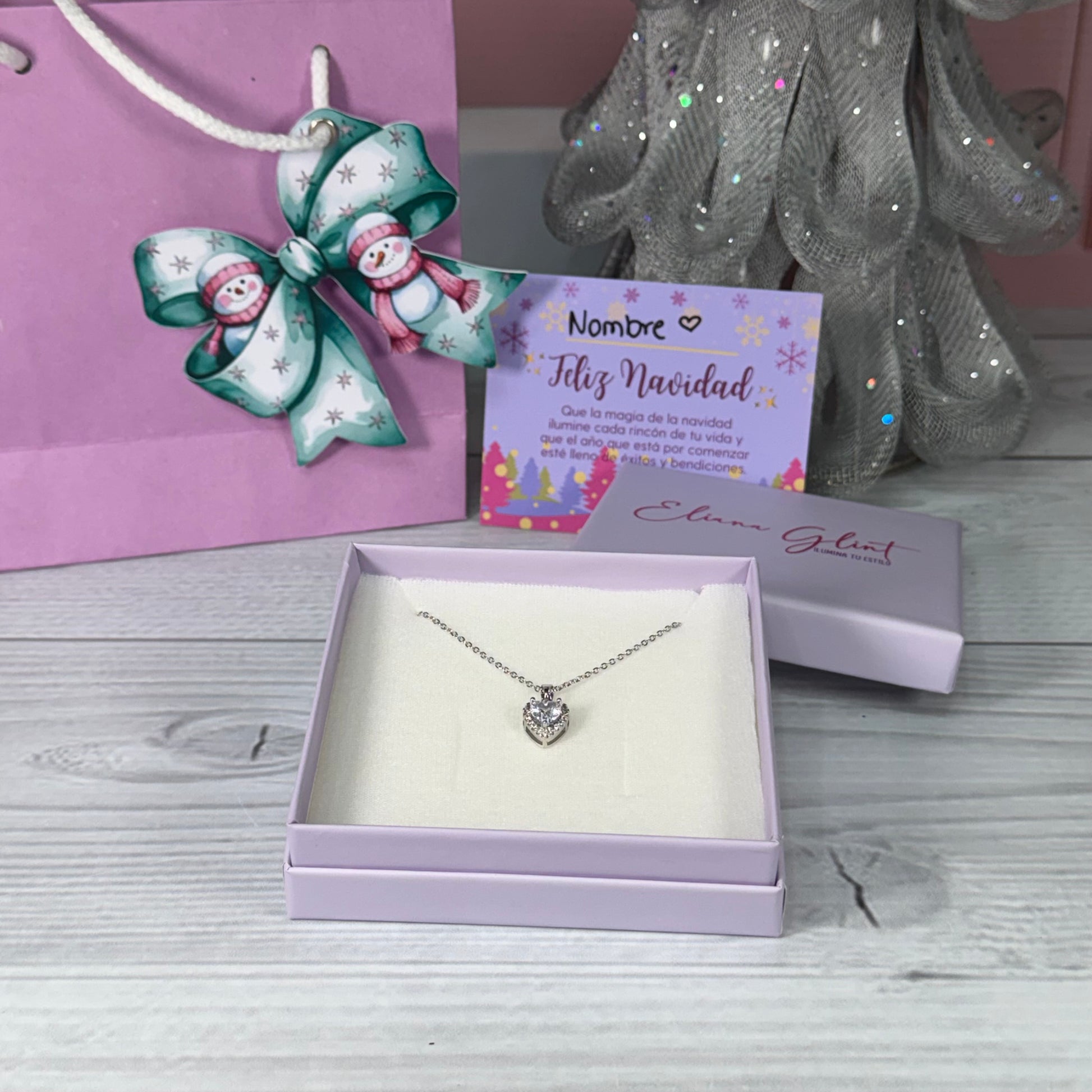 Regala elegancia pura esta Navidad con Crystal Heart Glow, un collar clásico y radiante que brilla con cada movimiento. Su dije en forma de corazón, con una zirconia central de alta claridad rodeada de pequeños destellos, lo convierte en un detalle perfecto para iluminar cualquier look festivo o del día a día. ✨🤍