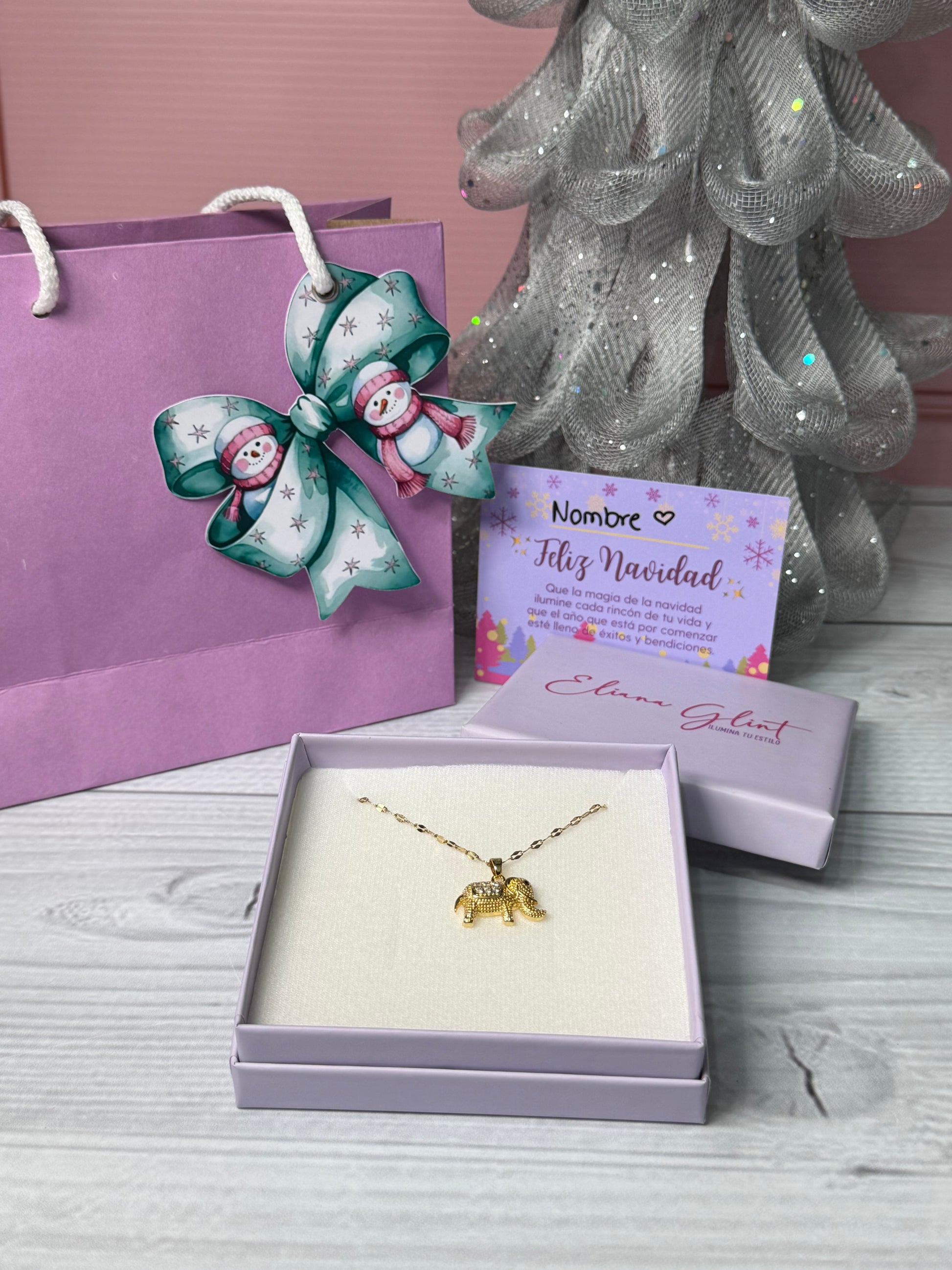 Lleva contigo un símbolo de buena energía con Elefantito de la Suerte – Edición Navideña, un collar luminoso y lleno de significado. Su dije dorado con incrustaciones de zirconia representa protección, sabiduría, fortaleza y abundancia: el amuleto perfecto para cerrar y comenzar el año con la mejor vibra.