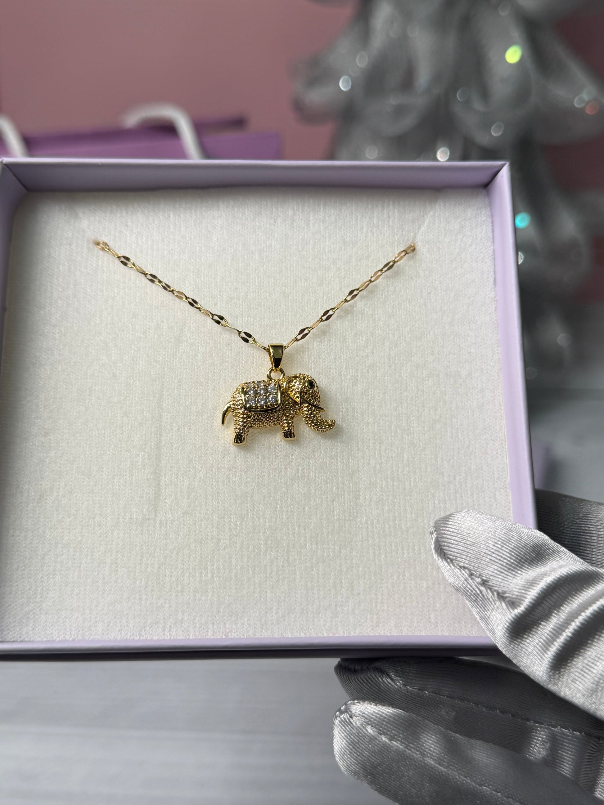 - ✔️ Dije de elefantito dorado con zirconias brillantes