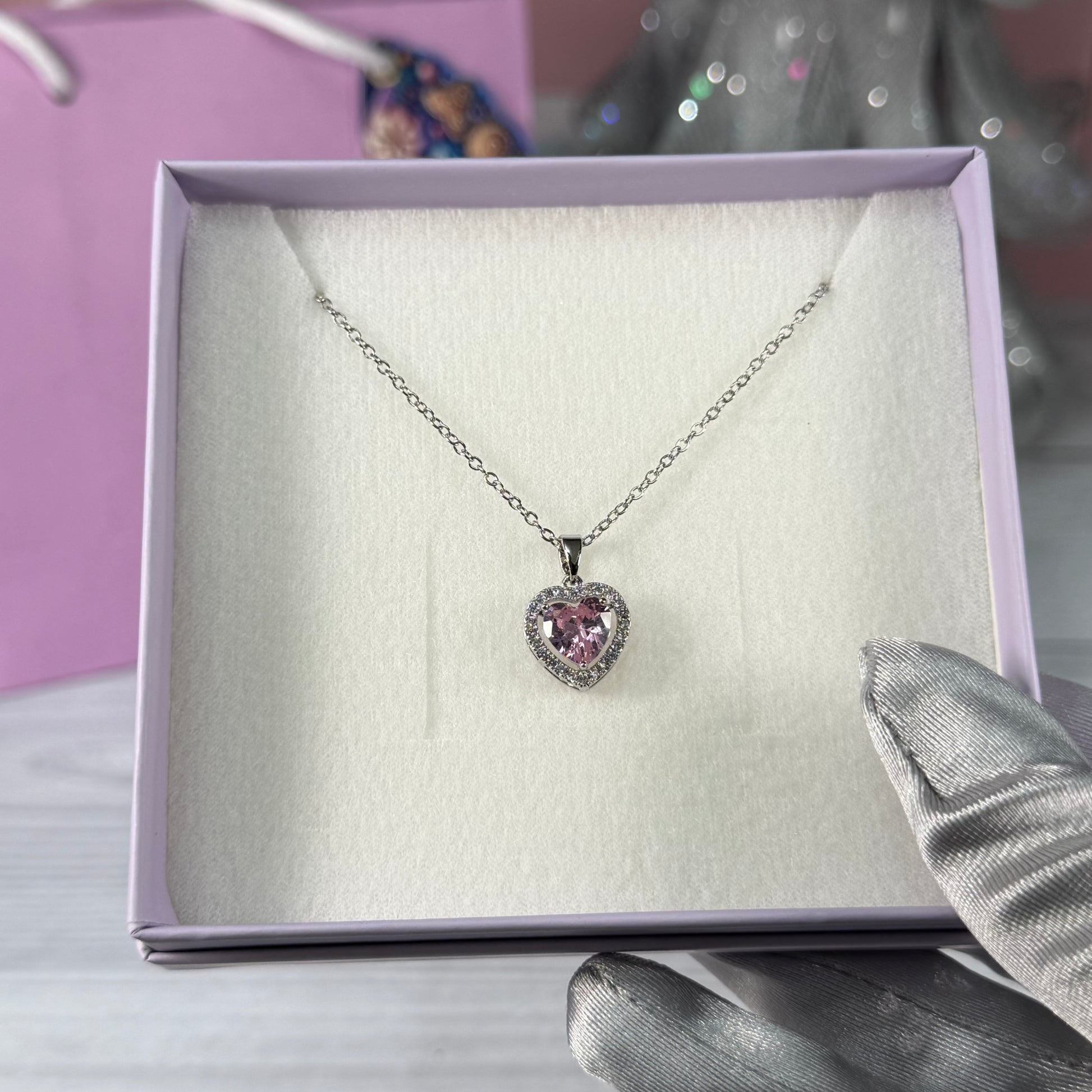 Dale un toque mágico y femenino a esta Navidad con Pink Heart Spark, un collar que enamora a primera vista. Su dije en forma de corazón, con una piedra central en rosa brillante rodeada de zirconias, lo convierte en el regalo perfecto para sorprender con dulzura y elegancia.